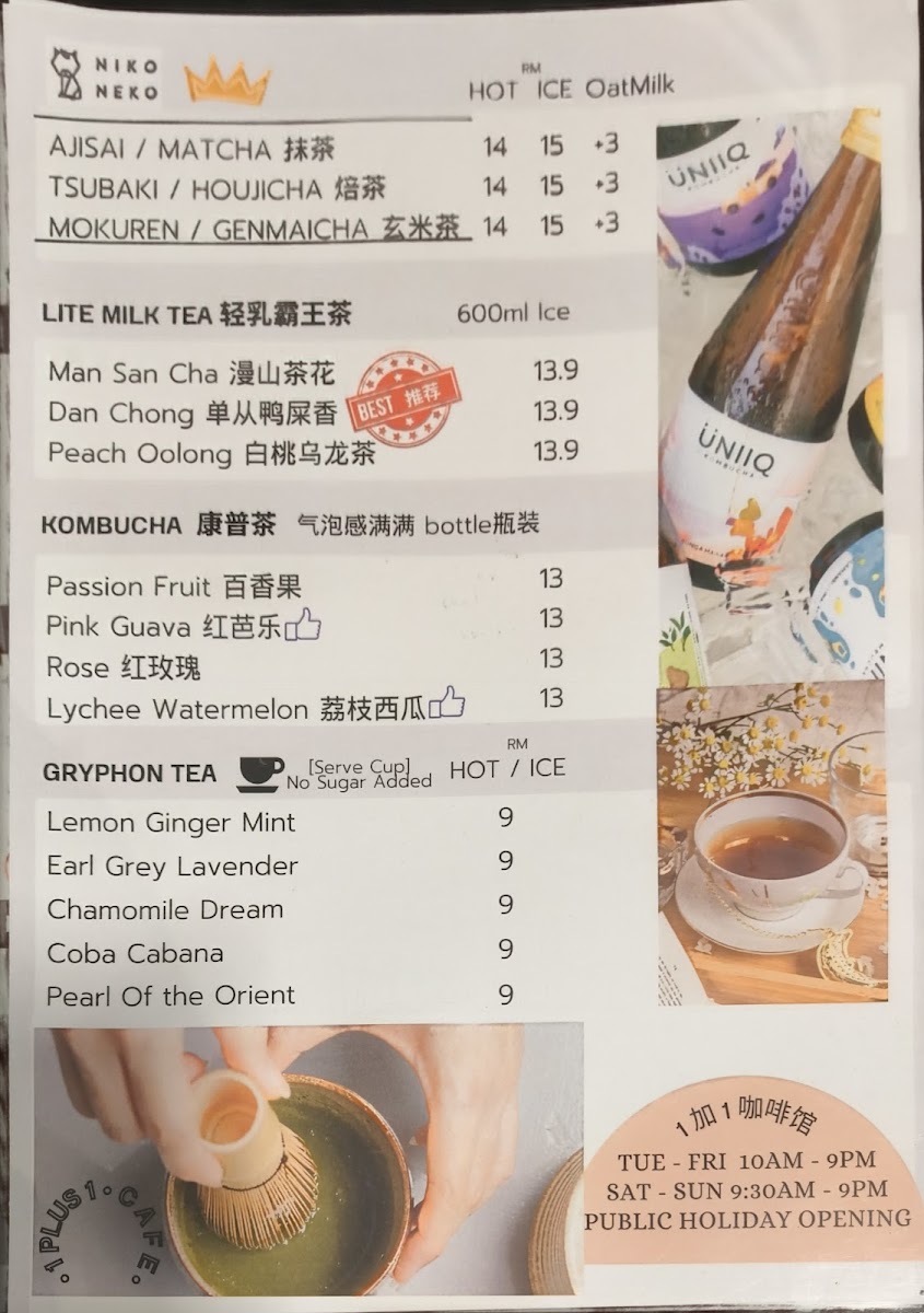 The menu at 1 Plus 1 Coffee • Fruit • Café offers a range of options suitable for coffee breaks, light meals, and casual dining. Visitors can expect a selection of coffee beverages including specialty choices like Ice Latte and Liberica-based brews. Alongside drinks, there are food items that cater to varied tastes, featuring mains such as chicken dishes, pasta options like aglio olio, and vegetarian selections including a wild mushroom carbonara. The menu also includes soups and rice bowls inspired by Korean BBQ flavors.